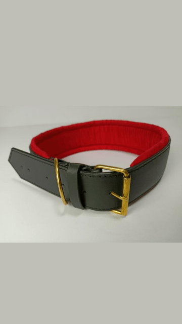 The collars are made of three strips of genuine leather and one stripe of a belt tape and stitched with a strong thread in two rows