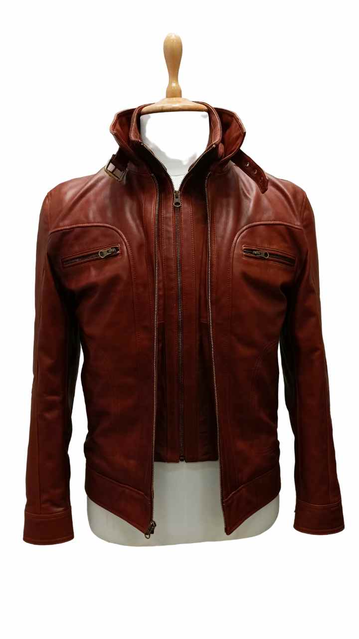 The jacket is made of high-quality leather, ensuring durability and a luxe feel.