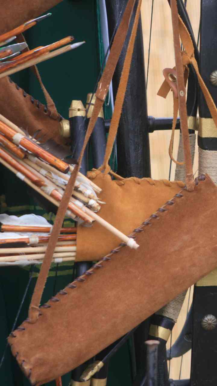 Back quivers: These are worn behind and are typically constructed of leather. They can carry as many as 24 arrows
