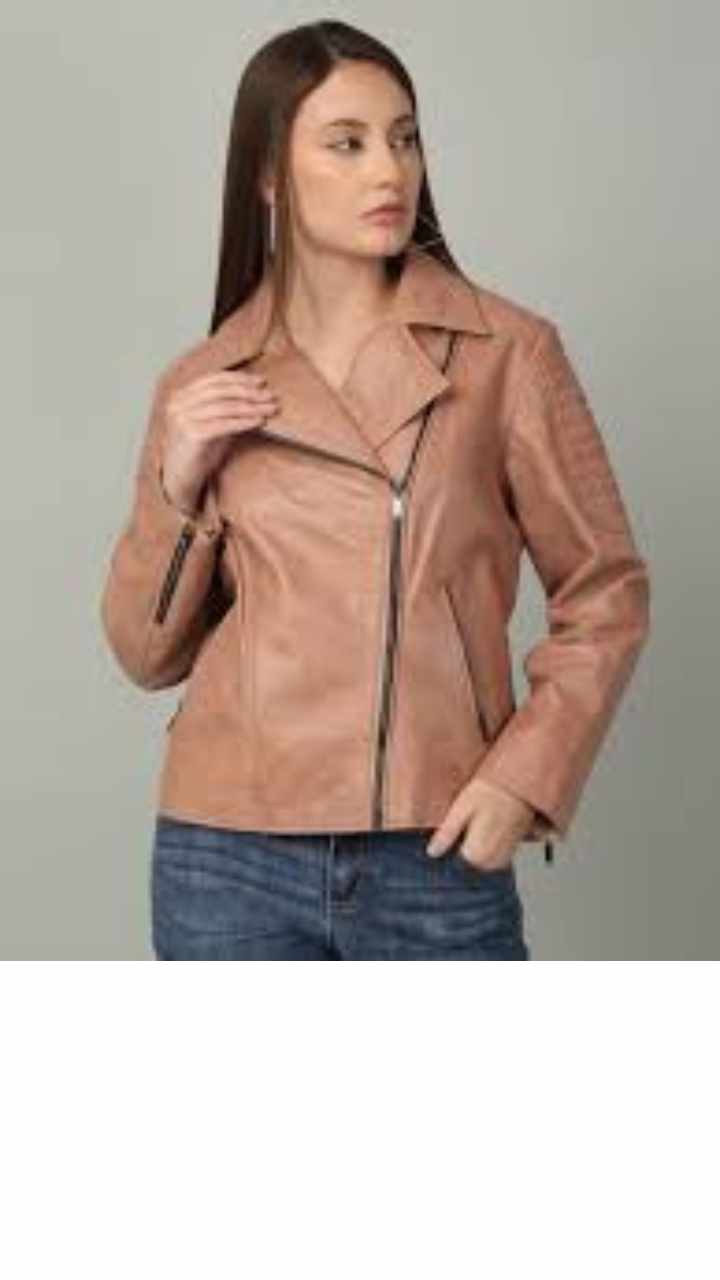 Available in classic black, deep brown, and striking metallic hues, the leather biker jacket enhances any outfit with its bold and rebellious touch.